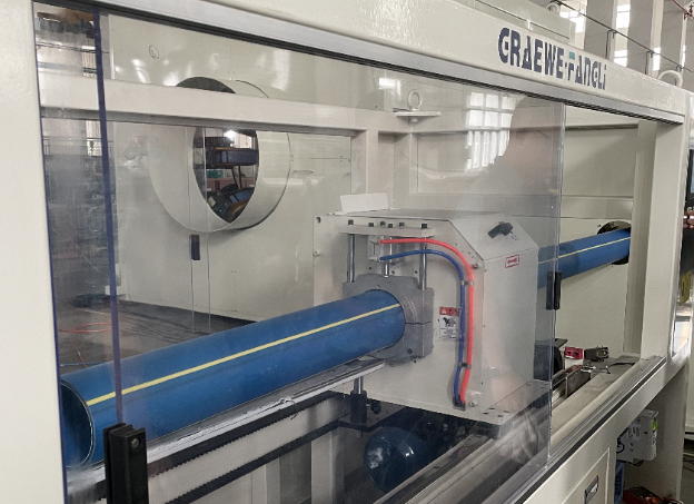 စတုတ္ထ၊ ပိုက်ကို ပိုးကောင်ဆွဲယူနစ်မှ ဆွဲယူကာ ပိုက်ကို ကြိုတင်သတ်မှတ်ထားသော အရှည်အတိုင်း ဖြတ်ထားသော ဖြတ်စက်သို့ ပေးပို့သည်။ တစ်ချိန်တည်းမှာပင်၊ ဖုန်မှုန့်များကို ဖုန်မှုန့်ဖယ်ရှားပေးခြင်းဖြင့် ဖြတ်တောက်ပစ်သည်။