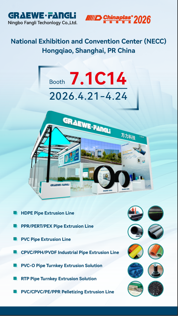 मराठी ChinaPlas 2026 တွင် ကျွန်ုပ်တို့၏ Booth 7.1C14 မှကြိုဆိုပါသည်။Ningbo Fangli Technology Co., Ltd.(၎င်းနောက် "Fangli" ဟုရည်ညွှန်းသည်) R&D၊ ထုတ်လုပ်ခြင်းနှင့်ရောင်းချခြင်းတို့ကို အထူးပြုပါသည်။ပလပ်စတစ် extrusion ပစ္စည်းများ, သဘာဝပတ်ဝန်းကျင် ကာကွယ်ရေး ထုတ်လုပ်မှုလိုင်းသစ်, ပလပ်စတစ်ပိုက်ဂဟေစက်များနှင့် ပလပ်စတစ်အရန်စက်များ။